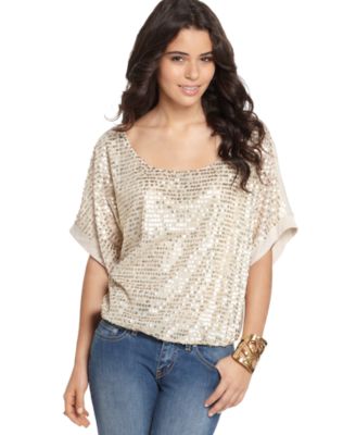 6. Boat Neck Gold Sequins Top by Fresh Brewed: